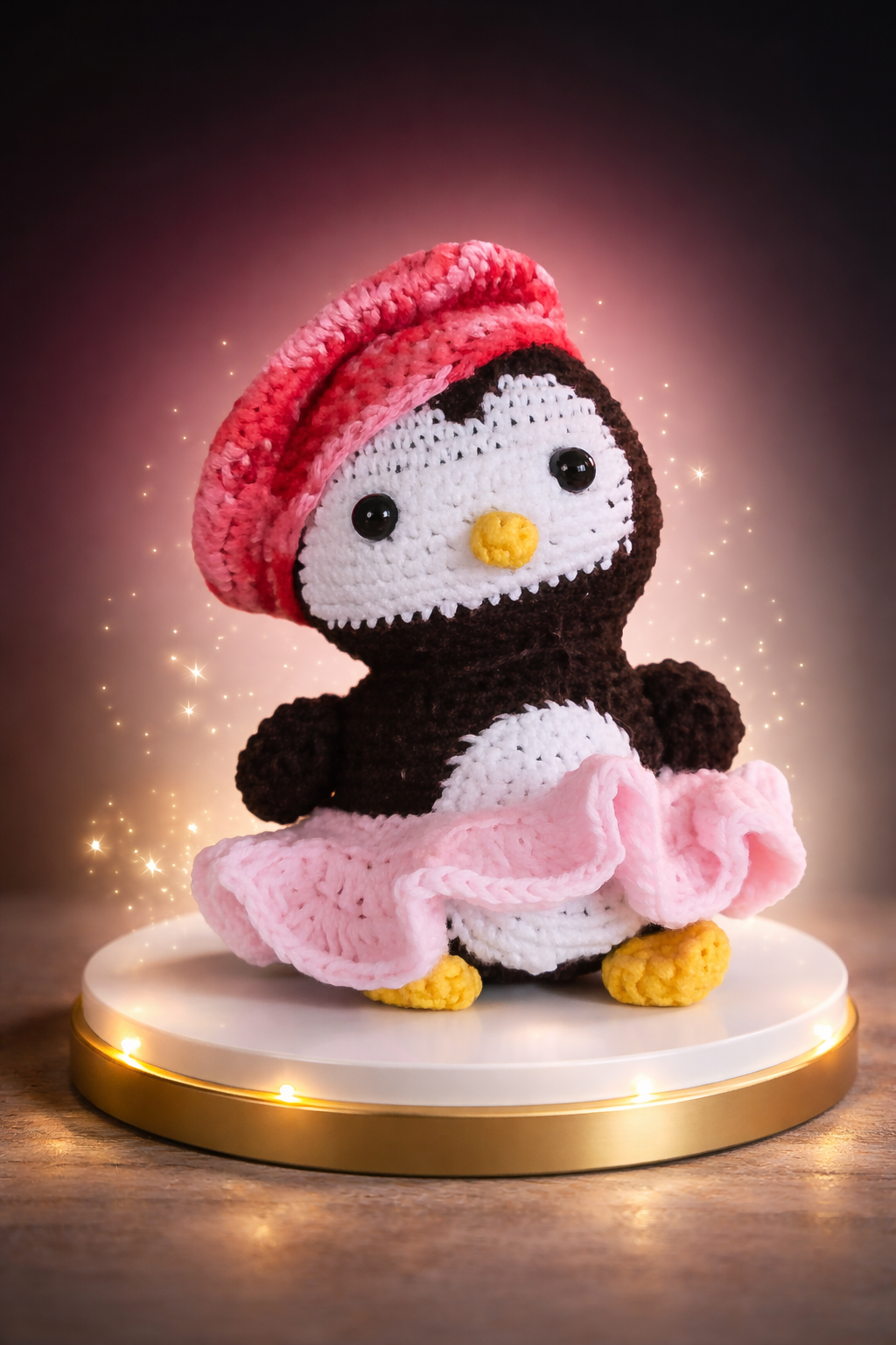 Craquez pour ce pingouin ballerine en crochet, entièrement réalisé à la main avec soin. Avec son béret rose et son tutu délicat, ce petit compagnon apporte une touche de douceur et de poésie à n’importe quel intérieur.